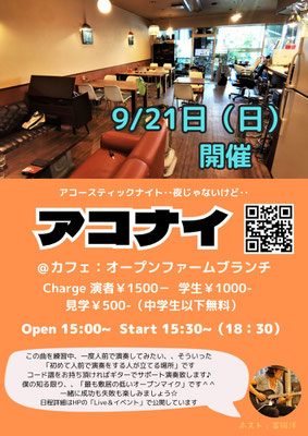 今月はアコナイイベントとLiveに加えお寺、ホテル、福祉施設なんかでの演奏が入っており、走り回る月となりそうで楽しみです★